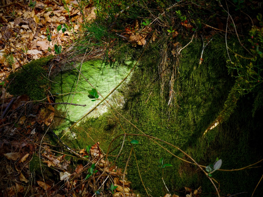 I en trollsk värld vandrade jag runt. Jag befinner mig inte i den riktiga världen, och det gör mig glad, lugn, nyfiken och tidlös. Mossa, detta täcke så grönt fuktigt, absorbera ljudet på ett magiskt sätt. Det diskanta ljudet av knäckande torra grenar under fotstegen blir mysigt här.