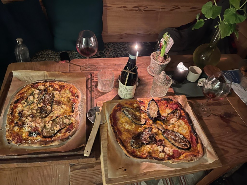 Kreativiteten flödar i ateljén denna vinter. Doften av oljefärger, lacknafta och nybryggt kaffe indikerar på att allt ok. Idyllen för mig är ett faktum, levande ljus, levande gitarrer, mörkret utanför dörren och penseldrag från ateljén.
